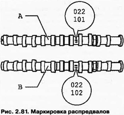 Маркировка нанесена между парой кулачков цил. 4 и цил. 5 соответствующего распредвала.