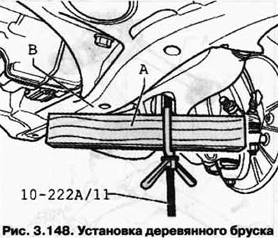 Вставьте деревянный брусок А длиной примерно 300 мм в скобы осей 10-222 А/11 (рис. 3.148).