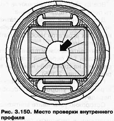 Проверьте внутренний профиль втулки в резинометаллической опоре (рис. 3.150).