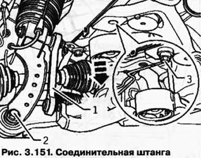 Открутите соединительную штангу слева и справа 1 от стабилизатора (рис. 3.151).