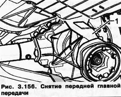 Снимите переднюю главную передачу 1 между кронштейном навесных агрегатов и двигателем/коробкой передач вниз следующим образом (рис. 3.156).