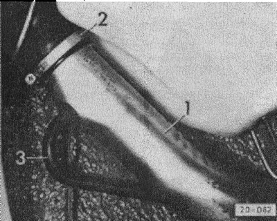 Снять заливную трубу «1». Для этого освободить хомут на заливной горловине и вытащить трубку вентиляции «3».