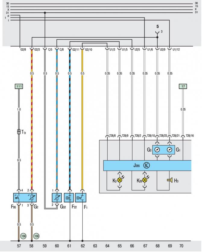- К28. Контрольная лампа температуры и недостаточного уровня охлаждающей жидкости