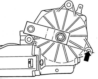 2. Установить рукояточный рычаг и подогнать так, чтобы нижний край его совпадал с указанным отверстием винта (см. рис. Электродвигатель лобового стекла, рис. Электродвигатель заднего стекла с широкой крышкой багажника и рис. Электродвигатель задних стекол (двустворчатая дверь)).