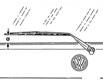 11. Установить дворник на высоту нижней нити обогрева обогреваемого заднего стекла, а = 45 мм. При оснащенности двустворчатой дверью установить дворники так, чтобы они в нерабочем положении находились вертикально.