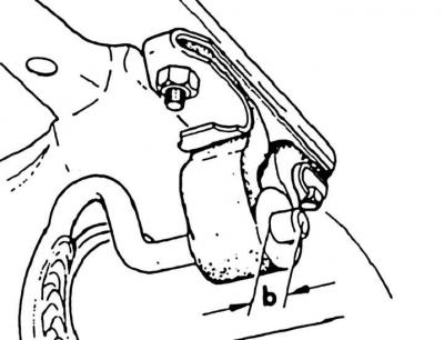 7. Обращать внимание на то, чтобы концы подвесок выступали из резиновых кронштейнов согласно размеру "b". Затем затянуть болты и гайки. Моменты затяжки соответствуют диаметрам резьбы.