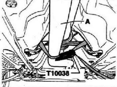 Приймальну трубу "А" зафіксувати стяжним ременем "Т10038" на проміжній опорі карданного валу.
