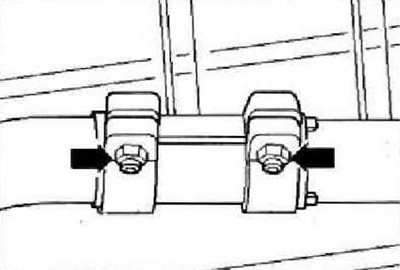 Послабити болти "стрілки" кріплення проміжної опори карданного валу приблизно на два оберти.