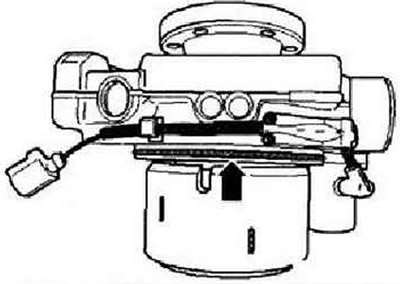 Віджати "двигун і КП" рукою вперед і зафіксувати їх у цьому положенні відповідним дерев'яним бруском "А".